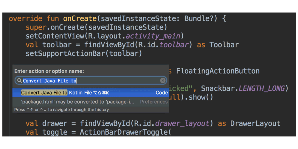 Developers can either start a project in Kotlin or convert Java project files into Kotlin with just a couple of clicks in the app.