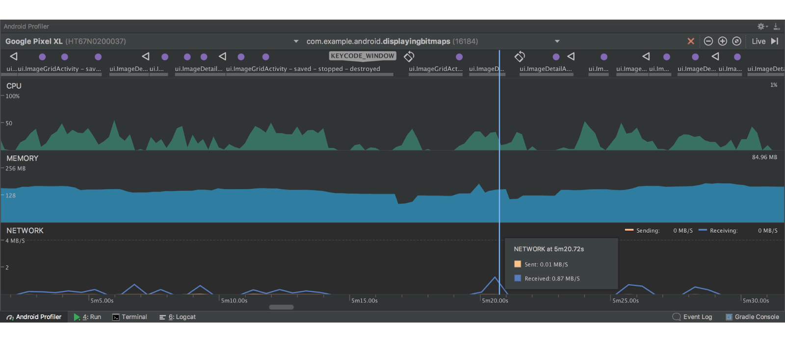Then there’s the new Android Profiler, which replaces the Android Monitor tool with a suite of tools for measuring app's CPU, memory, and network usage in real-time.