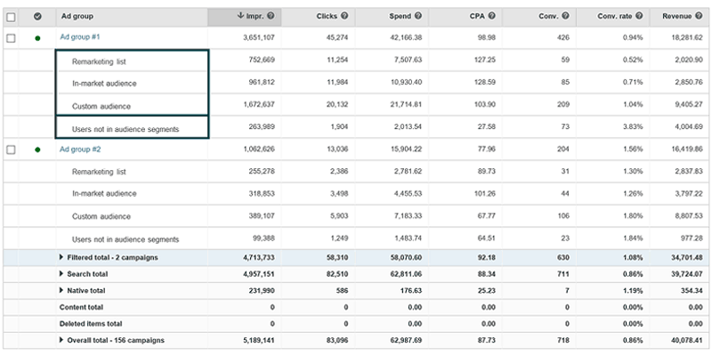 Putting data into one place, the feature allows advertisers to see how their ad groups are performing with Remarketing in Paid Search, In-market Audiences or Custom audiences - and compared them to non-targeted users.