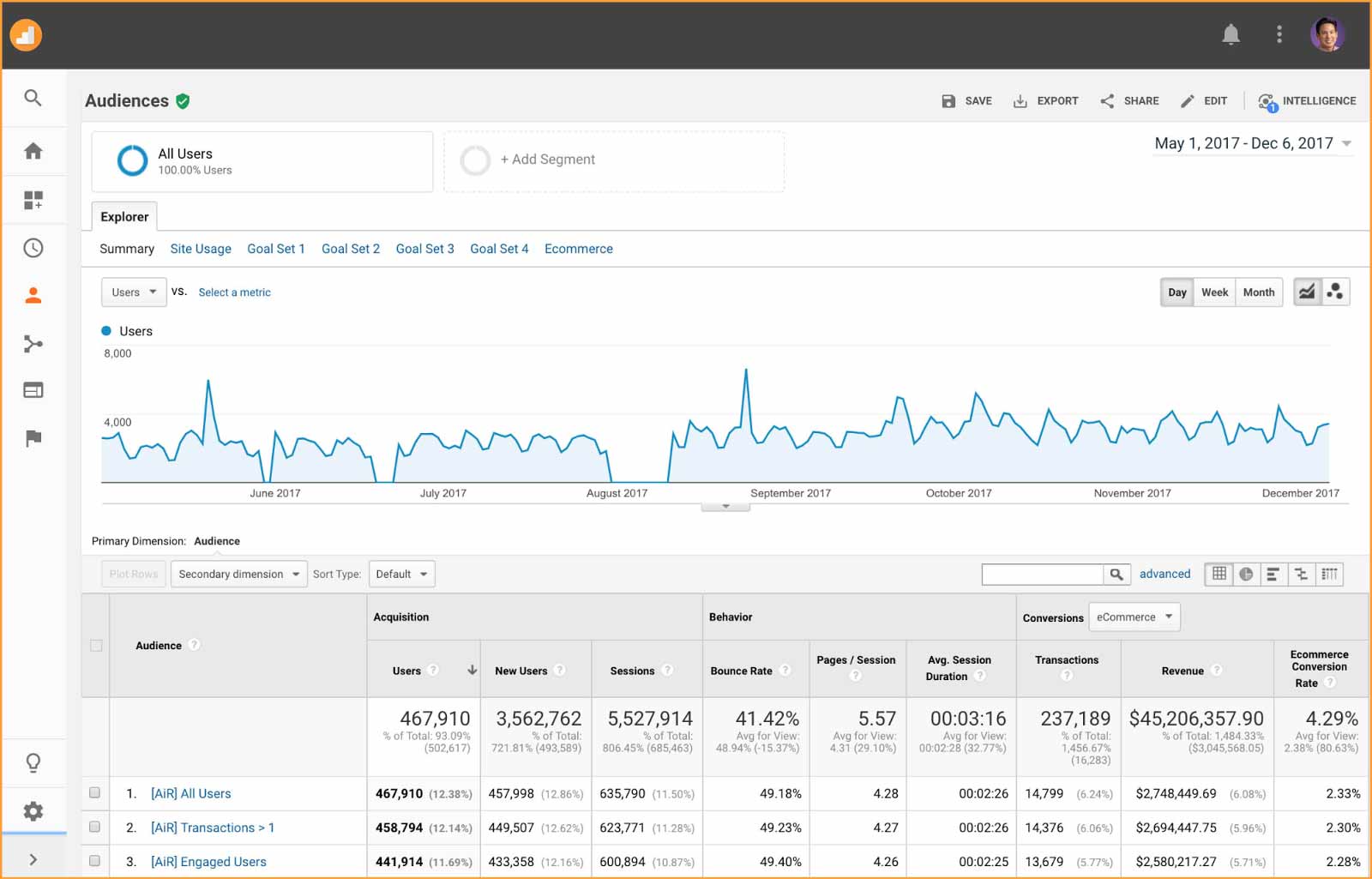 The standard reporting in Google Analytics has been updated to focus on users, to include "Users," instead of just "Sessions." User metrics are essential in understanding engagements, especially those who may have multiple sessions across multiple days.